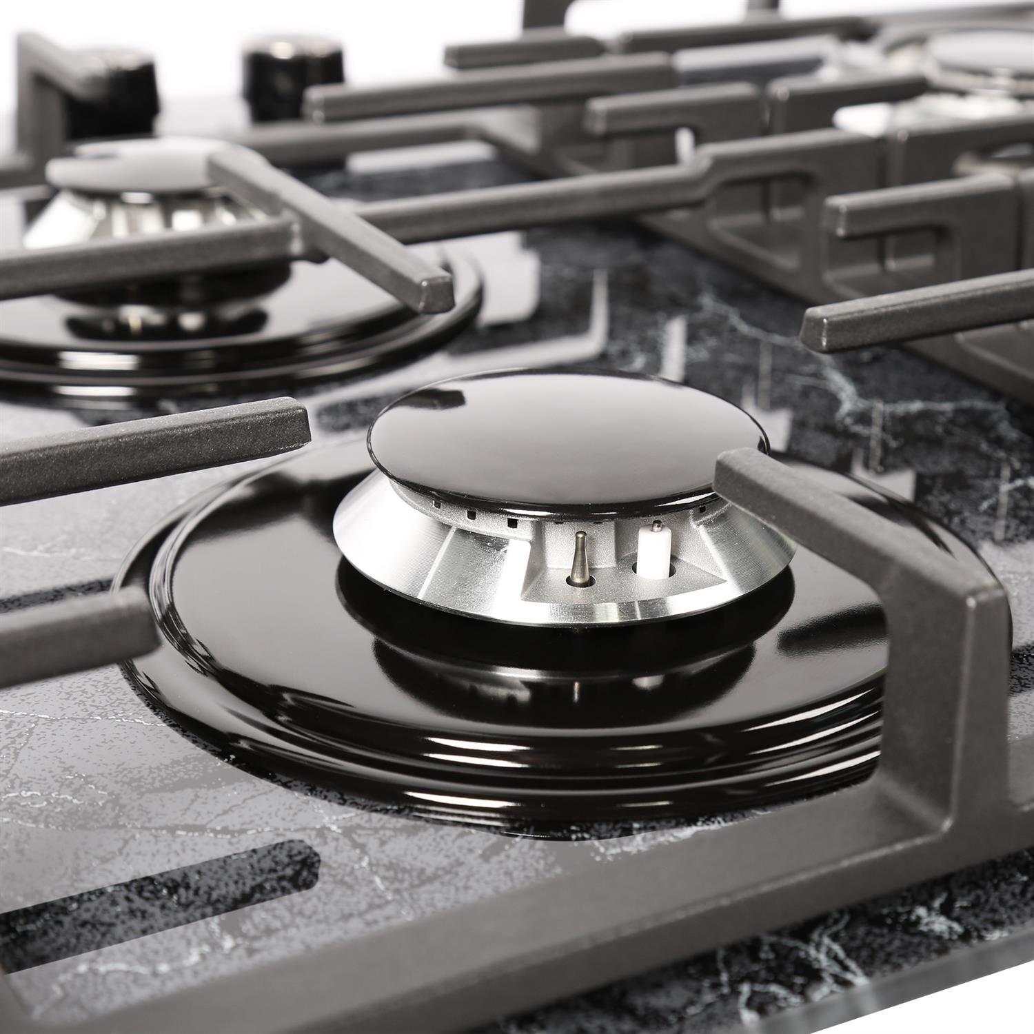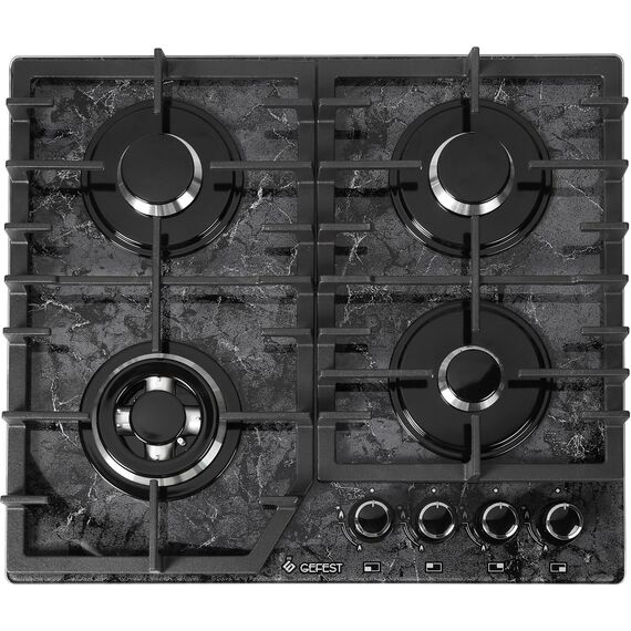 Размеры монтажного проема, ШхГ, см 55,4 х 48,6. Ширина, см 60, Глубина, см 52,5, Высота, см 10. Тип подключения Газовый. Количество зон приготовления 4. Цвет модели Черный. Дизайн Мрамор. Материал варочной поверхности Стекло. Материал решеток варочной поверхности Чугун. Двухзонная горелка варочной поверхности. Газ-контроль горелок стола. Электророзжиг горелок стола встроен в ручки. "Фиксированное положение ""малое пламя"". Диапазон номинального напряжения сети, В 220-230. Масса (нетто/брутто), кг 13,5 / 14,5. Номинальная частота сети, Гц 50.