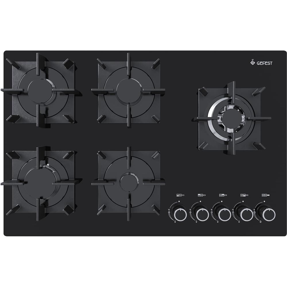 Варочная поверхность: стеклянная. Цвет: черный. Газ-контроль горелок стола. Чугунные решетки горелок стола. Двухзонная горелка. Электророзжиг горелок, встроенный в ручки. Фиксированное положение «малое пламя». Количество зон приготовления: 5. Габаритные размеры ШхГхВ: 80х52.5х10 см.