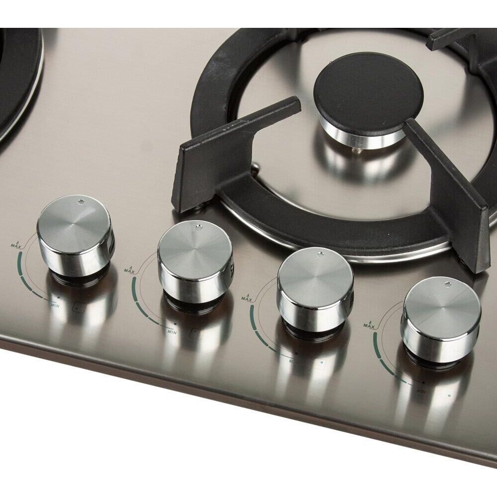 "Всего конфорок: 4 Материал решетки: Чугун Защита от задувания: Есть Электро поджиг: Есть Вид газа: Натуральный газ Мощность: 3.3+1.75+1.75+1.0 KW Номинальное давление 2.0KPa(20mbar) Размер: Верхний - 60х52 см Внутренний - 56х48 см Глубина - 7 см Размер упаковки - 65х56х15 см Вес- 9,7 кг Рекомендуется использовать только от общедомовой бытовой системы газоснабжения! Монтаж оборудования должен производиться только специалистом"
