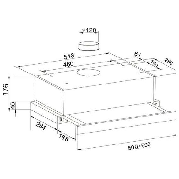Вид установки встраиваемая Бежевый, Ширина 600мм, Воздушный поток 500 м/ч, 2 стандартные лампы, Мощность освещения 2x25 Вт, 2 aлюминиевыйх фильтра, необходимое количество угольных фильтров - 2 шт, Модель угольного фильтра FU-20, Уровень шума 34-50 дБ, управление - тумблер, Вес нетто 7 кг, Китай
