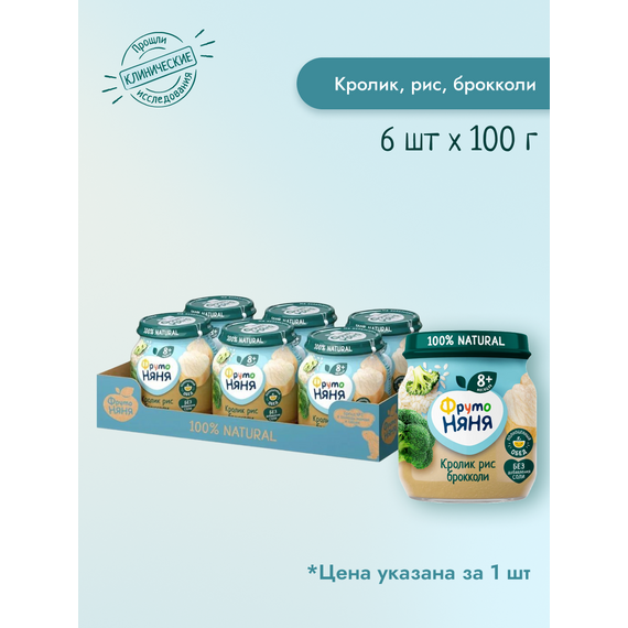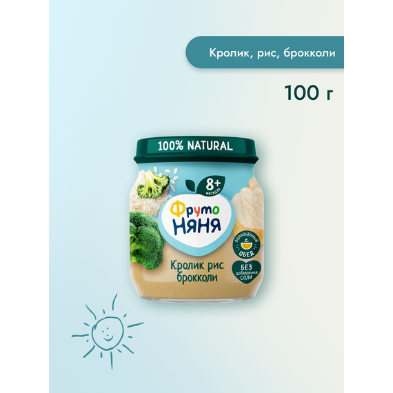 ФрутоНяня Пюре из брокколи и кролика с рисом, 100 г
