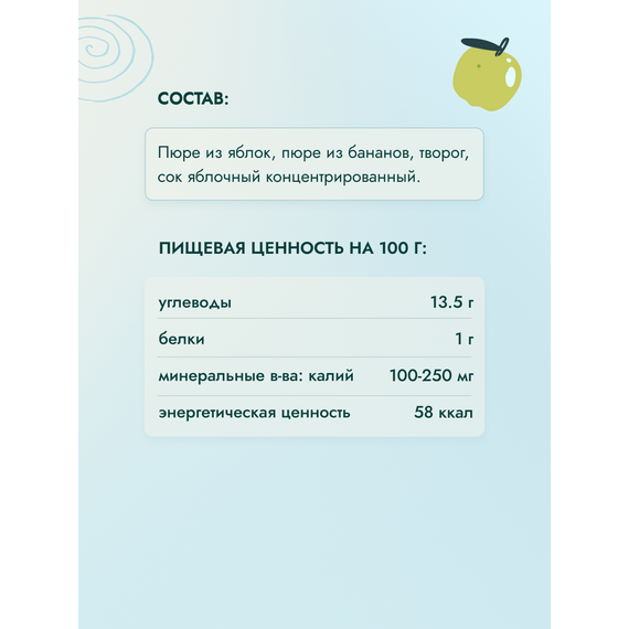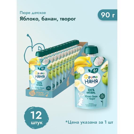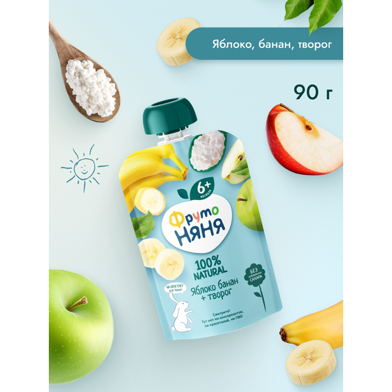 ФрутоНяня Пюре из яблок с бананом и творогом, 90 г