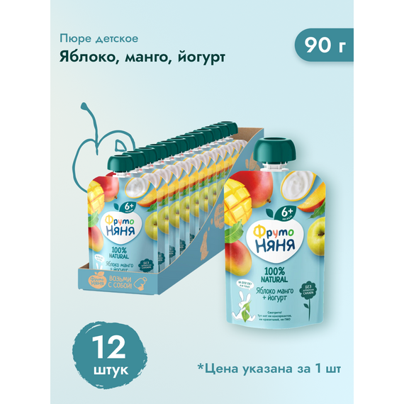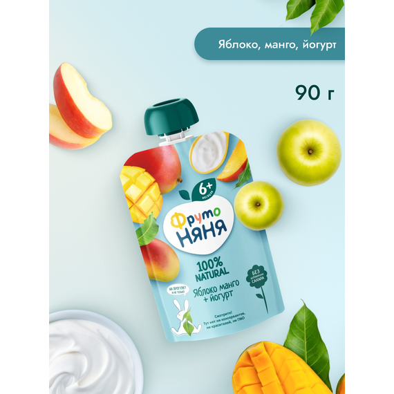 ФрутоНяня Пюре яблоко, манго с йогуртом, 90 г