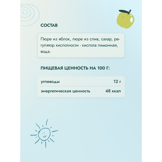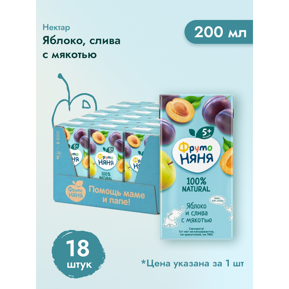 Нектар из яблок и слив с мякотью «ФрутоНяня» — это яркое сочетание насыщенных вкусов яблока и сливы, которое точно понравится вашему малышу. В состав нектара входят 100% натуральные ингредиенты — пюре из спелых яблок и из слив. Нектар от «ФрутоНяня» из яблок и слив поможет разнообразить рацион детей от 5 месяцев, зарядит их энергией и подарит отличное настроение. Знакомьте малыша с новыми фруктовыми вкусами вместе с «ФрутоНяней».