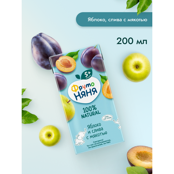 ФрутоНяня Нектар из яблок и слив с мякотью, 0,2 л