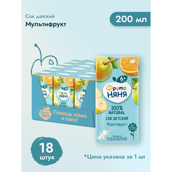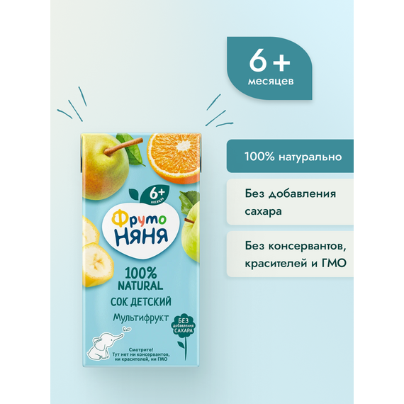 ФрутоНяня Сок Мультифрукт Груша, яблоко, банан, апельсин, 0,2 л