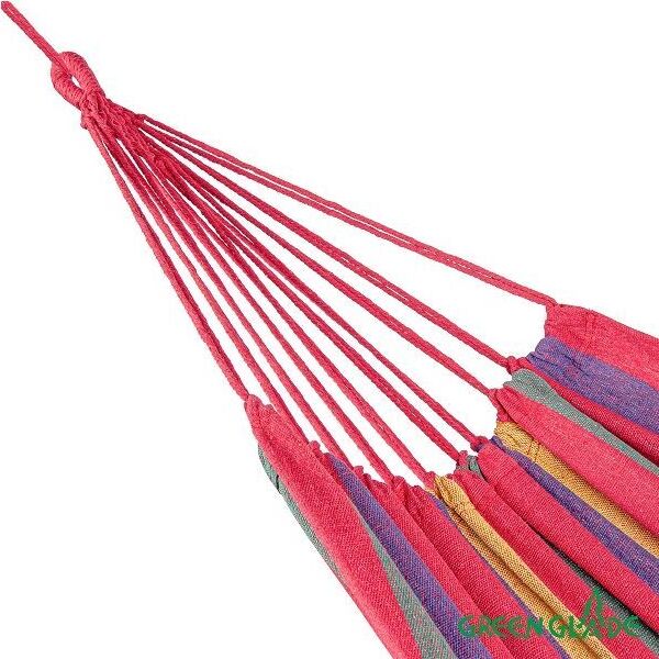 Подвесной гамак Green Glade – это гарантия отличного времяпровождения на свежем воздухе. В тканевом гамаке можно уютно расположиться с любимой книгой в руках, спрятаться от жары в тени деревьев и подремать. А яркая расцветка поспособствуют отличному летнему настроению. • Размер: 200х100 см • Вес нетто: 1,083 кг • Материал: поликоттон 320 г/м2 с веревкой из поликоттона 50 см с каждой стороны • Комплектация: чехол • Размер индивидуальной упаковки: 27х16х12 см • Количество в коробке: 24 штуки • Размер коробки: 50х50х55 см • Вес брутто: 27 кг • Производитель: Green Glade • Страна: Китай