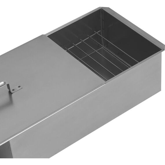 Предназначена для горячего копчения рыбы и мяса на открытом воздухе. Размер 500 x 270 x 175 см. Толщина стенки 0,8 мм. С поддоном. Материал жаропрочная углеродистая сталь. Вес 4,1 кг. Материал сталь. На ножках. Толщина стали 0.8 мм. Габариты 500 x 270 x 175 мм.