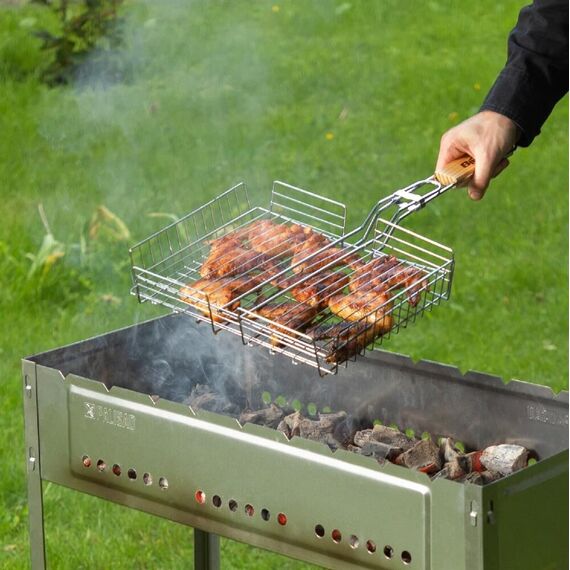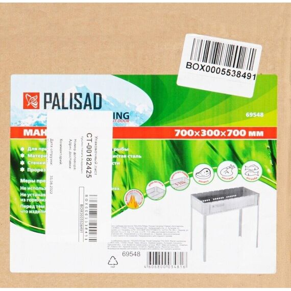 PALISAD Мангал с ребрами жесткости 700*300*700мм Мангалы предназначены для приготовления мяса, птицы, рыбы на открытом воздухе с использованием древесного угля или дров. Мангалы PALISAD Camping изготовлены из углеродистой стали, соответствующей ГОСТу 16523-97. Ребра жесткости придают конструкции дополнительную прочность, а прорези для поддува обеспечивают тягу и увеличивают стойкость к деформации. Основные характеристики Материал сталь Толщина стали 0.7 мм Комплектация с ребрами жесткости Габариты 700 x 300 x 700 мм Параметры упаковки Длина в упаковке 730 мм Ширина в упаковке 330 мм Высота в упаковке 30 мм