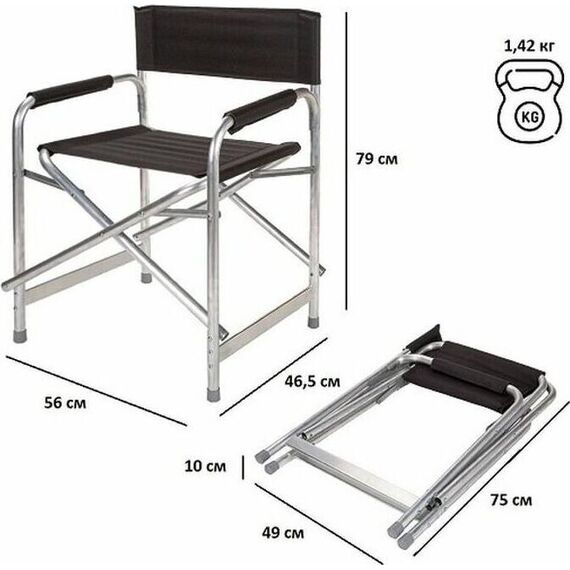 Удобный и компактный складной стул идеально подходит для отдыха на природе. Прочный и удобный складной стул незаменим для пикника. Стул очень быстро складывается и раскладывается. • Pазмер д/ш/в 56х46,5х79 см • Каркас алюминий o 24мм • Материал: ткань ПВХ • упаковка: 70*41*81 см