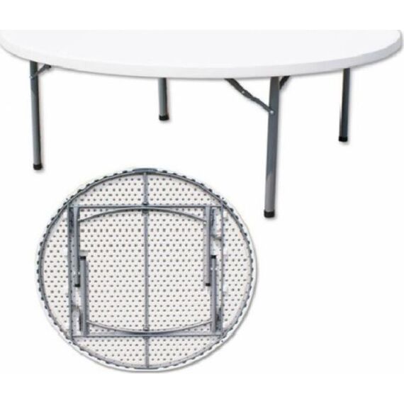 Большой круглый стол складной F160 отлично подойдет для использования на даче в качестве обеденного для большой компании, а возможность сложить его пополам позволяет удобно хранить стол зимой. Стол сделан из прочного приятного наощупь пластика HDPE, имитация под дерево •Диаметр: 160 см •Высота: 74 см • Размер стола в сборе: 160х80х9 см •Каркас: стальная труба O 28 мм •Столешница: пластик HDPE (ш 4,5 см) •Цвет: белый •Каркас: стальная труба O 25х1 мм •Упаковка: 1 шт/1 коробка •Вес нетто: 20 кг • Вес брутто: 21,5 кг •Размер упаковки: 169X89X10 см •Торговая марка: Green Glade.