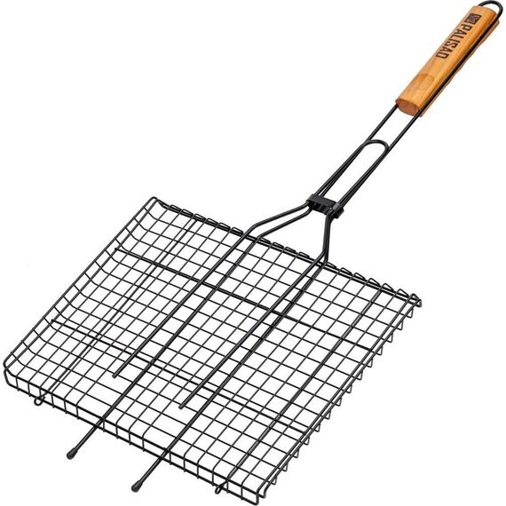 Решетка гриль Palisad Camping 69556 размером 260 х 350 мм, с антипригарным покрытием, используется для качественной равномерной жарки пищи с двух сторон на мангале. Пригодится любителям отдыха на открытом воздухе для приготовления мяса, рыбы и овощей.Преимущества Долговечность решетки обеспечивает жаропрочная сталь высокого качества, из которой она выполнена. Антипригарное покрытие предотвращает прилипание мяса к решетке. Увеличенные опорные стержни обеспечивают возможность использования всей рабочей площади решетки. Толстое кольцо-фиксатор предотвращает случайное раскрытие решетки и обеспечивает безопасное переворачивание блюд. Эргономичная рукоятка выполнена из древесины, поэтому приятна на ощупь и удобна в эксплуатации.