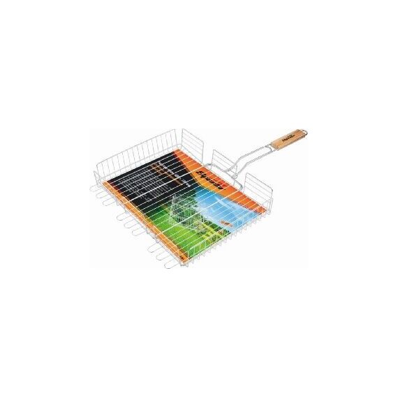 SPARTA Решетка-гриль 240х310х55 мм, объемная хромированная. Конструкция объемной решетки-гриль позволяет фиксировать верхнюю плоскость на разной высоте, поэтому на решетке можно запекать продукты различной толщины — от стейков до куриных окорочков, не передавливая их и оставляя сочными. Высококачественная жаропрочная сталь. Эргономичная рукоятка. Широкое кольцо-фиксатор.