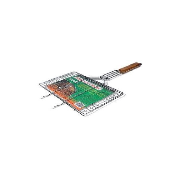 Двойная решетка для гриля L=59 см с деревянной ручкой- для мяса, упоры для мангала Коробка: 66*35,5*35 см, вес 19 кг, 12 кор/пал