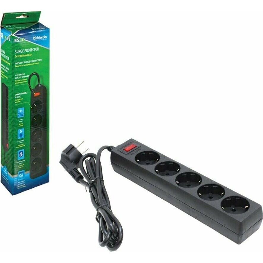 Фильтр сетевой DEFENDER (99485) ES сет.фильтр 5роз - 3м - (пакет) черный