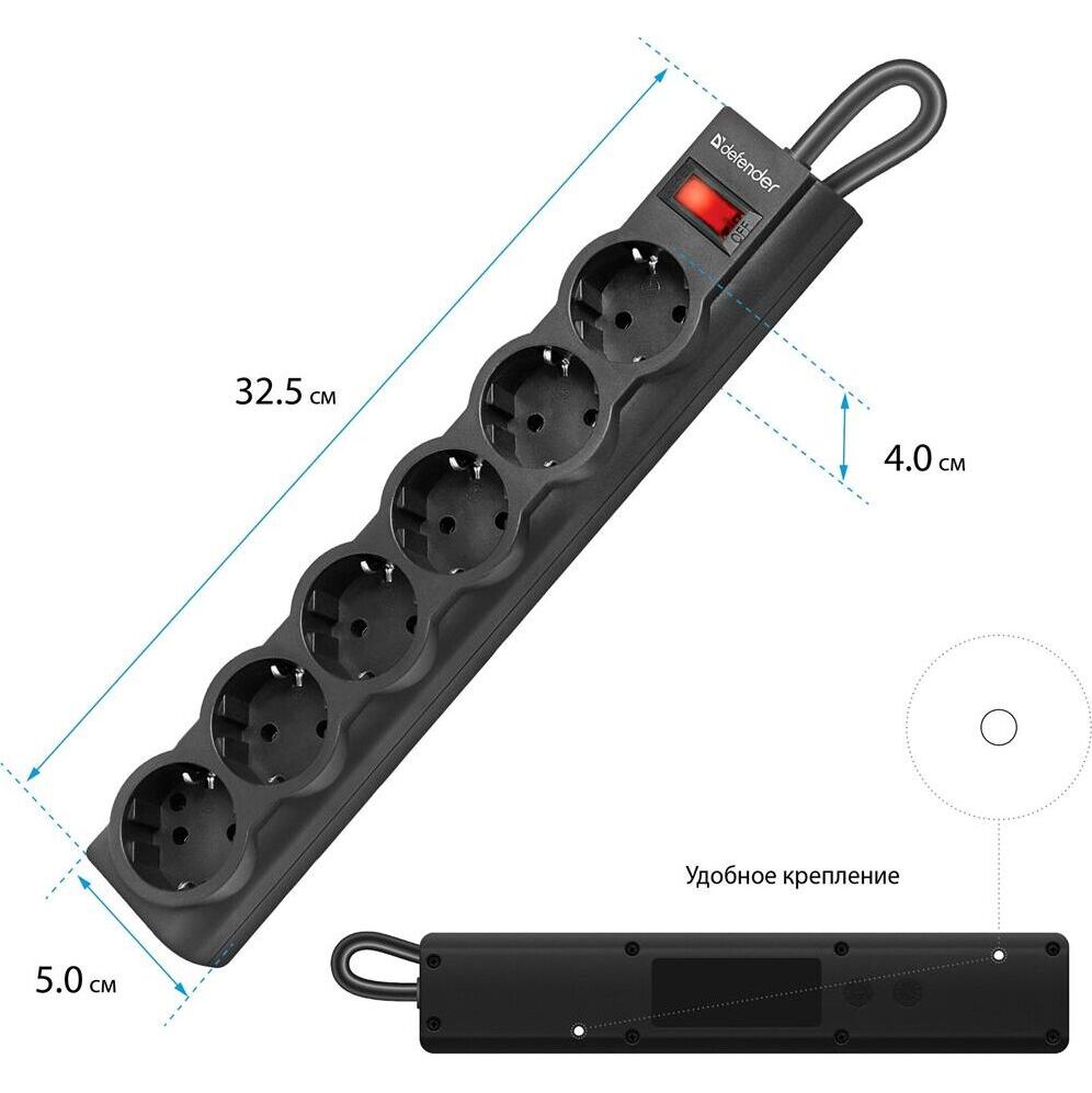 Сетевой фильтр DEFENDER DFS 155 - 6 роз - 5м - черный