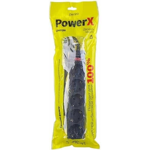 сетевой фильтр PERFEO (PF_A4714) "POWERX" - 5 роз - 1,8м - черный