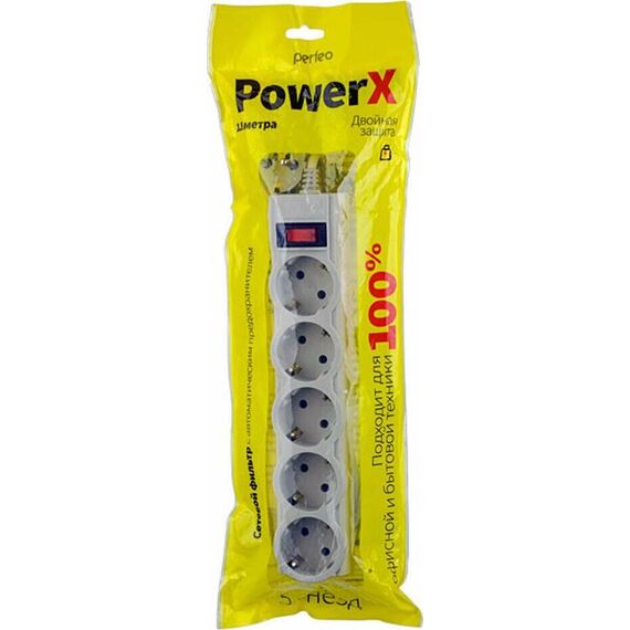 Сетевой фильтр PERFEO (PF_A4719) "POWERX" - 5 роз - 5м - серый