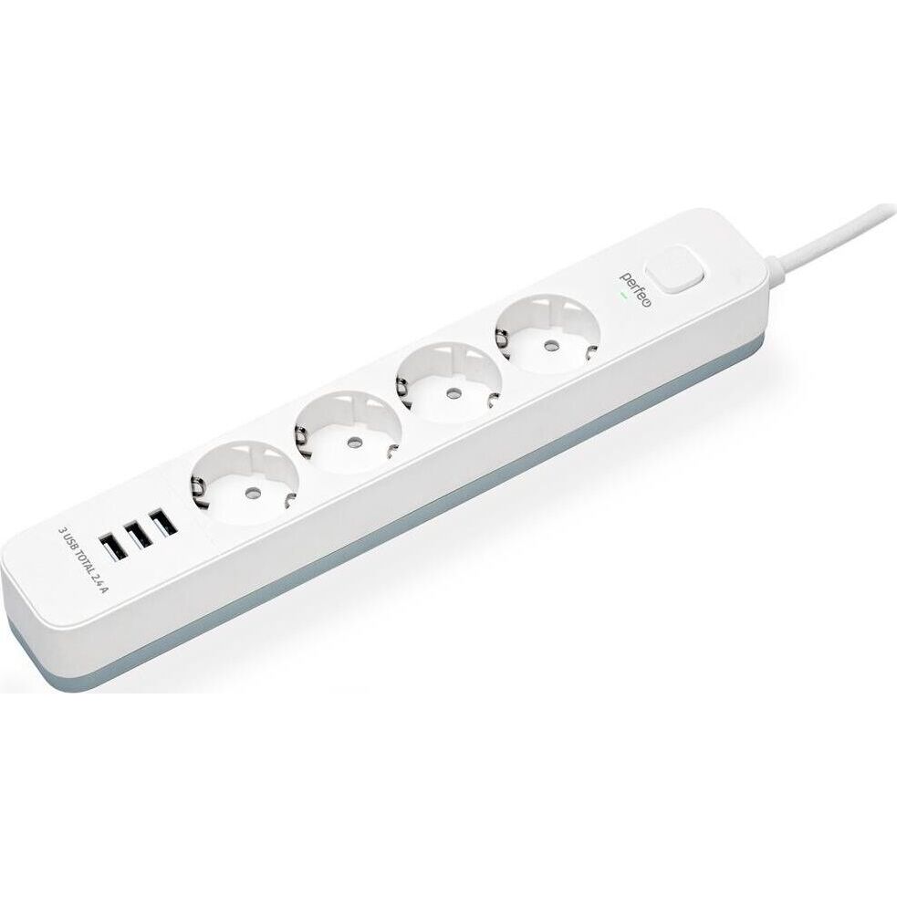 сетевой фильтр PERFEO (PF_C3955) POWER STREAM - 4 роз - 2,0 м - белый
