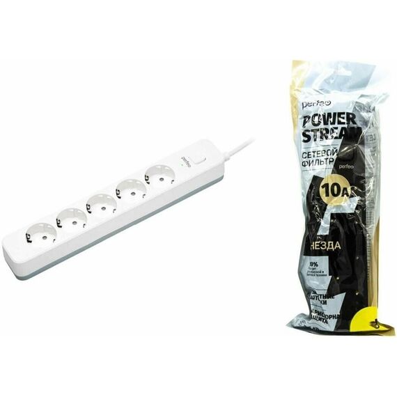 сетевой фильтр PERFEO (PF_C3967) POWER STREAM - 5 роз - 5,0 м - белый