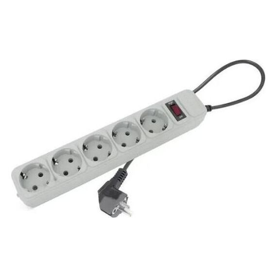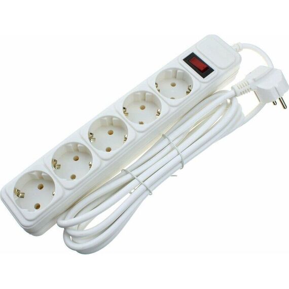 Трёхжильный кабель ПВС, сечение 0,75 мм2, заземление, номинальное напряжение: 220 В, рабочая частота: 50-60 Гц, сила тока: 10 А, макс. мощность нагрузки: 2200 W (2,2 кВт), 5 гнезд, длина кабеля: 3 м, материал: пластик ABS; индивидуальная упаковка: пакет с европодвесом.