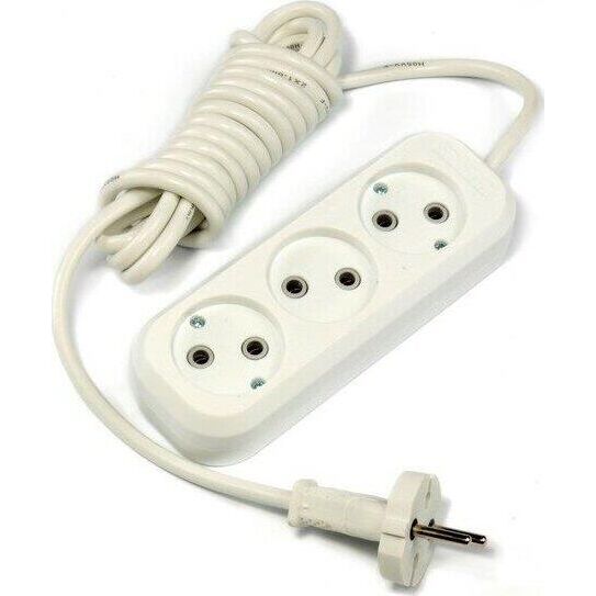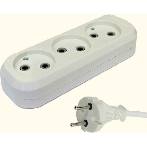 Удлинитель, количество розеток - 3, номинальный ток, А - 10, номинальное напряжение: 250 В; частота: 50 Гц; тип провода: ПВС 2x1,0мм; материал корпуса: АБС-пластик; климатическое исполнение: УХЛ-3; степень защиты от влаги и пыли: IP-20; длина провода - 3 м.