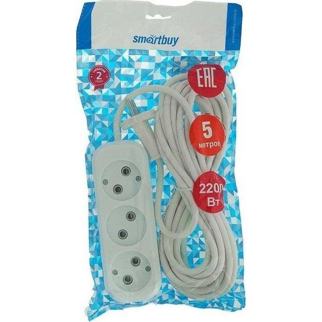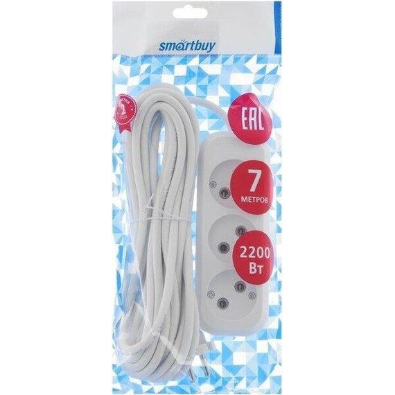 Удлинитель без заземления SMARTBUY (SBE-10-3-07-N) 3 гнз х 7,0 м (10А/2.2кВт, ПВС 2х1.0)