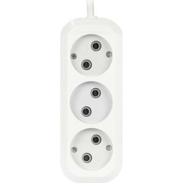 Удлинитель, количество розеток - 3, номинальный ток, А - 10, номинальное напряжение: 250 В; частота: 50 Гц; тип провода: ПВС 2x1,0мм; материал корпуса: АБС-пластик; климатическое исполнение: УХЛ-3; степень защиты от влаги и пыли: IP-20; длина провода - 7 м.