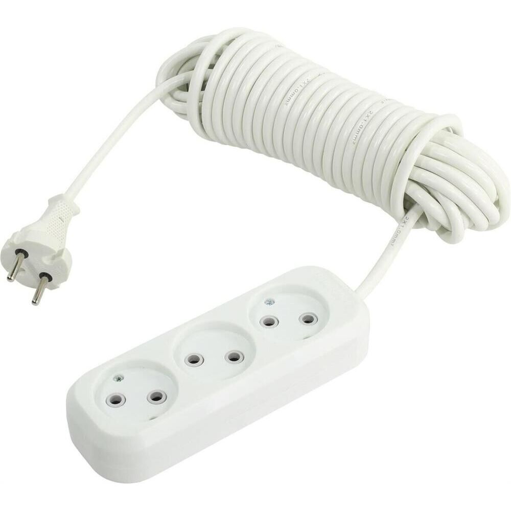 Удлинитель, количество розеток - 3, номинальный ток, А - 10, номинальное напряжение: 250 В; частота: 50 Гц; тип провода: ПВС 2x1,0мм; материал корпуса: АБС-пластик; климатическое исполнение: УХЛ-3; степень защиты от влаги и пыли: IP-20; длина провода - 10 м.