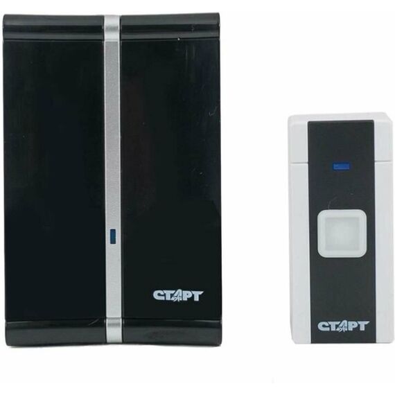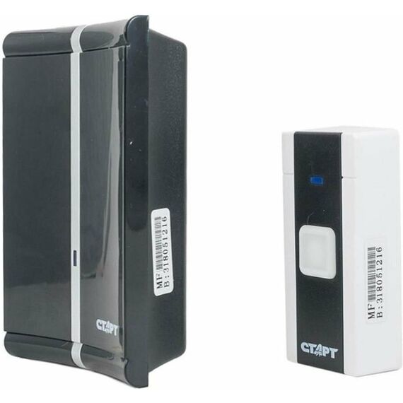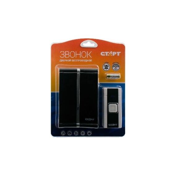 36 мелодий на выбор. Влагозащищенная кнопка. Светодиодный индикатор. Радиус действия - 80 м на открытом пространстве. 3 уровня громкости. Громкость 65-85 дБ. Питание динамика от 2 батареек ААА (2х1,5В) (не в комплекте). Питание кнопки от батарейки А23 (12 В) (в комплекте). Матеариал - ударопрочный пластик.