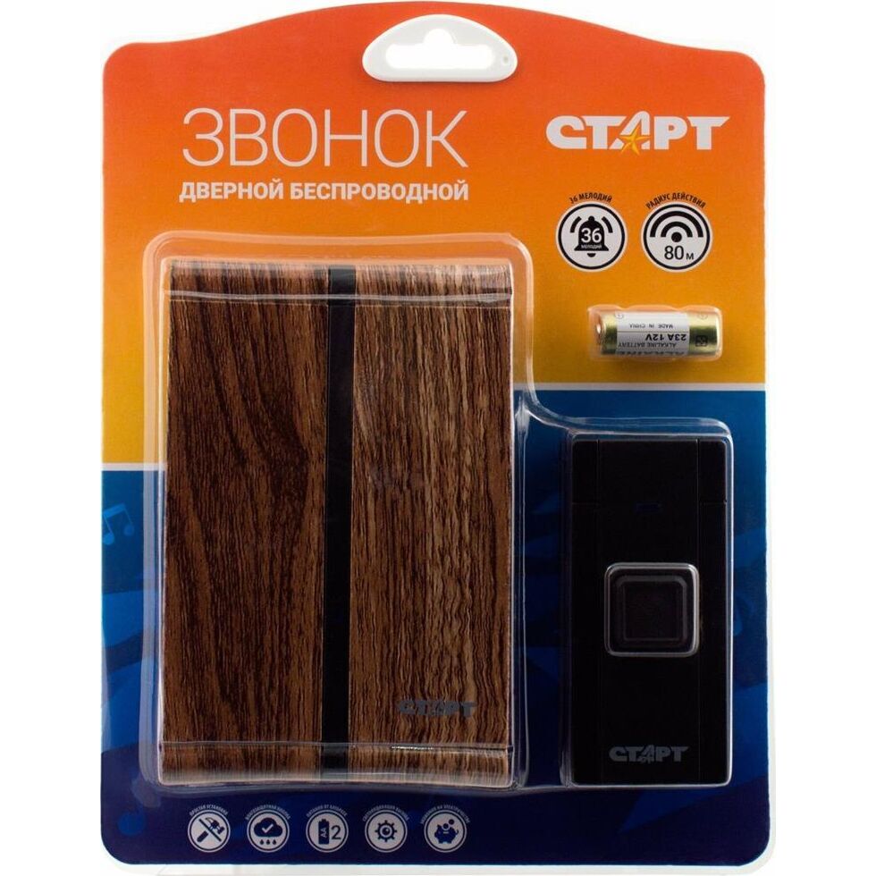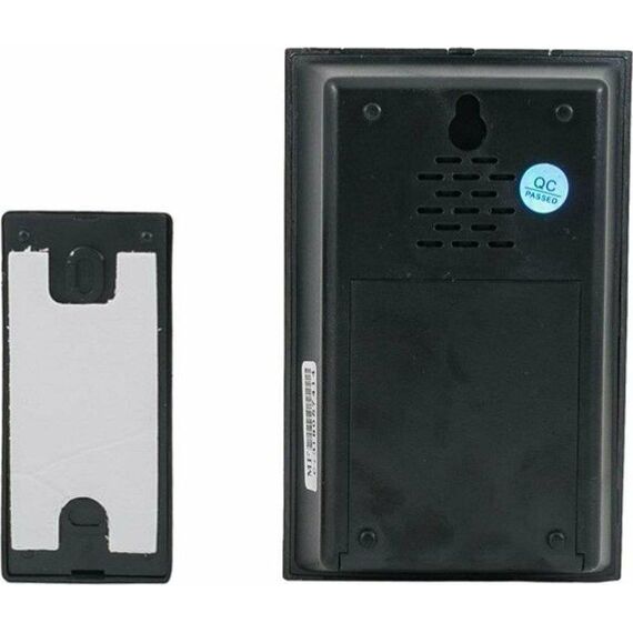 36 мелодий на выбор. Влагозащищенная кнопка. Светодиодный индикатор. Радиус действия - 80 м на открытом пространстве. 3 уровня громкости. Громкость 65-85 дБ. Питание динамика от 3 батареек ААА (3х1,5В) (не в комплекте). Питание кнопки от батарейки А23 (12 В) (в комплекте). Матеариал - ударопрочный пластик.