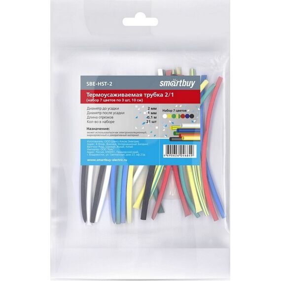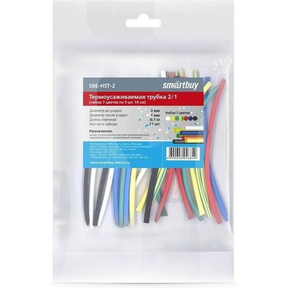 термоусадочная трубка SMARTBUY (SBE-HST-2) термоусаживаемая трубка 2/1 набор (набор 7 цветов по 3 шт, 10 см)