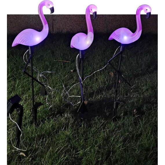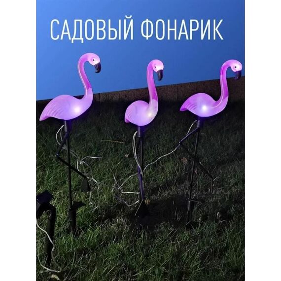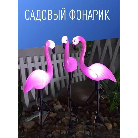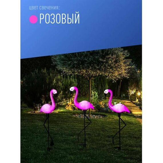 Беспроводной LED-светильник «Фламинго» станет прекрасным украшением для вашего сада. Удобная конструкция — к солнечной панели с аккумулятором подключены 3 фонарика-фламинго. Позволит разместить подсветку у клумбы, украсить пруд или территорию рядом с бассейном, оригинально подсветить тропинку или вход в террасу. Каждая фигурка высотой 52,5 см. Каждый фламинго оснащен двумя яркими светодиодами. Заряд аккумулятора осуществляется при свете солнца при включенном переключателе. С наступлением ночи фламинго загораются. Высота фламинго - 52.5см. Аккумулятор в комплекте NI-MH 600мАч, 1,2В. Время непрерывной работы при полностью заряженном аккумуляторе - 8 часов. 6 ярких светодиодов белого света