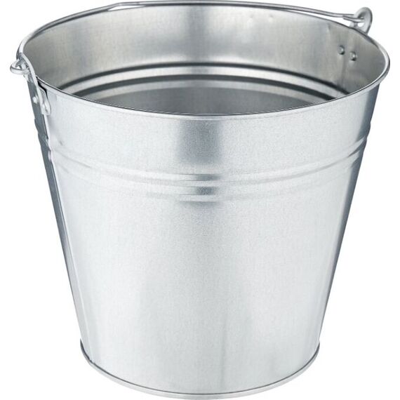 Ведро оцинкованное размер: d 33 х h 28 см объем: 15л материал: тонколистовой оцинкованной стали 0,8КП, толщина листа 0,4-0,5мм ушки: клепанные, формованные, толщина листа 0,5-0,55мм ручка: оцинкованная проволока, диаметр 4-5мм 3 ребра жесткости 2 продольных шва, обработано герметиком упаковка: стикер