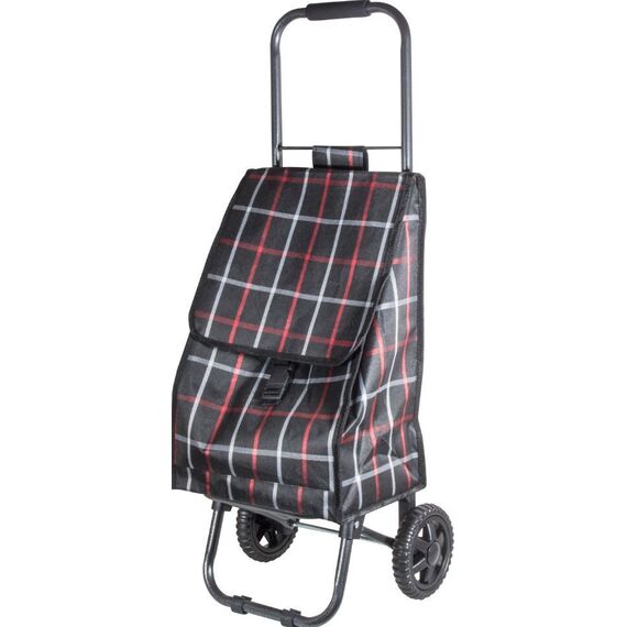 Тележка с сумкой "Brown" - размер тележки 31*28*84 см; - размер сумки 30*20.5*47 см; - диаметр колеса — 135 мм (пластик); - грузоподъемность: 30 кг; - вес тележки: 1,3 кг Материал: cталь, пластик, ПВХ, сумка — 100% полиэстер (400D) Упаковка: П/э пакет с биркой
