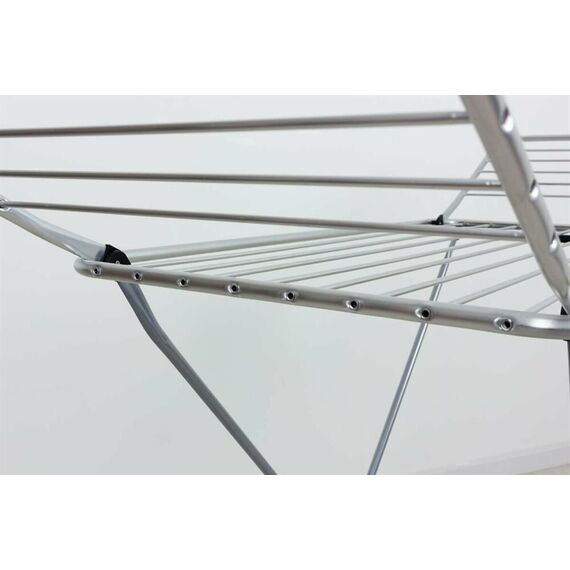 Сушилка для белья напольная складная. Стальной каркас серебристого цвета с антикорозийным полимерным покрытием и алюминиевыми прутьями.Общая рабосая длина прутьев 18 м. Рабочая нагрузка 18 кг. В разложенном виде габариты. 176х55х92 В сложенном виде габариты 55х5х130 вес 2,57
