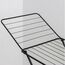 Размер изделия в сложенном виде (ДхШхВ), мм 1285х535х35 Преимущества: Прочный металлический каркас и струны с антикоррозийным покрытием Распашные створки Пластиковые наконечники на опорах для предотвращения скольжения и защиты от повреждений Удобный механизм складывания Компактное хранение Длина сушильного полотна 18 м Максимальная нагрузка - до 15 кг