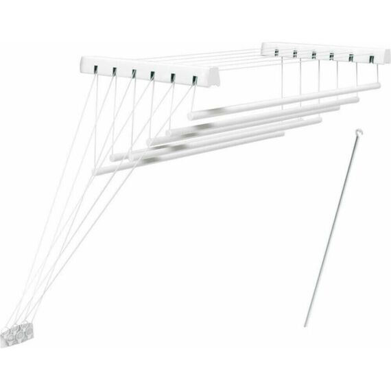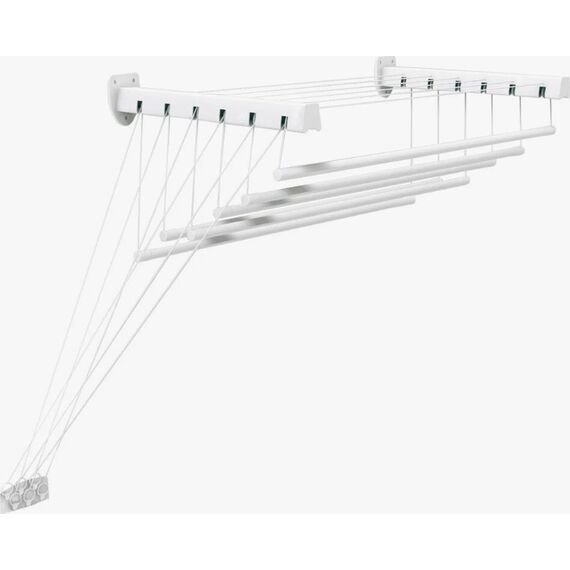 ЦВЕТ: белый. РАЗМЕР ИЗДЕЛИЯ: 430 x 1 600 x 1 350 мм. МАТЕРИАЛ: металл + полипропилен. Сушилка для белья с возможностью крепления на стену или к потолку. Оптимальна для использования в ванной комнате или на балконе. Изготовлена из нержавеющей стали с полимерным порошковым покрытием, которое защищает от воздействия влаги и предотвращает механические повреждения.
