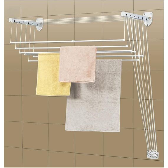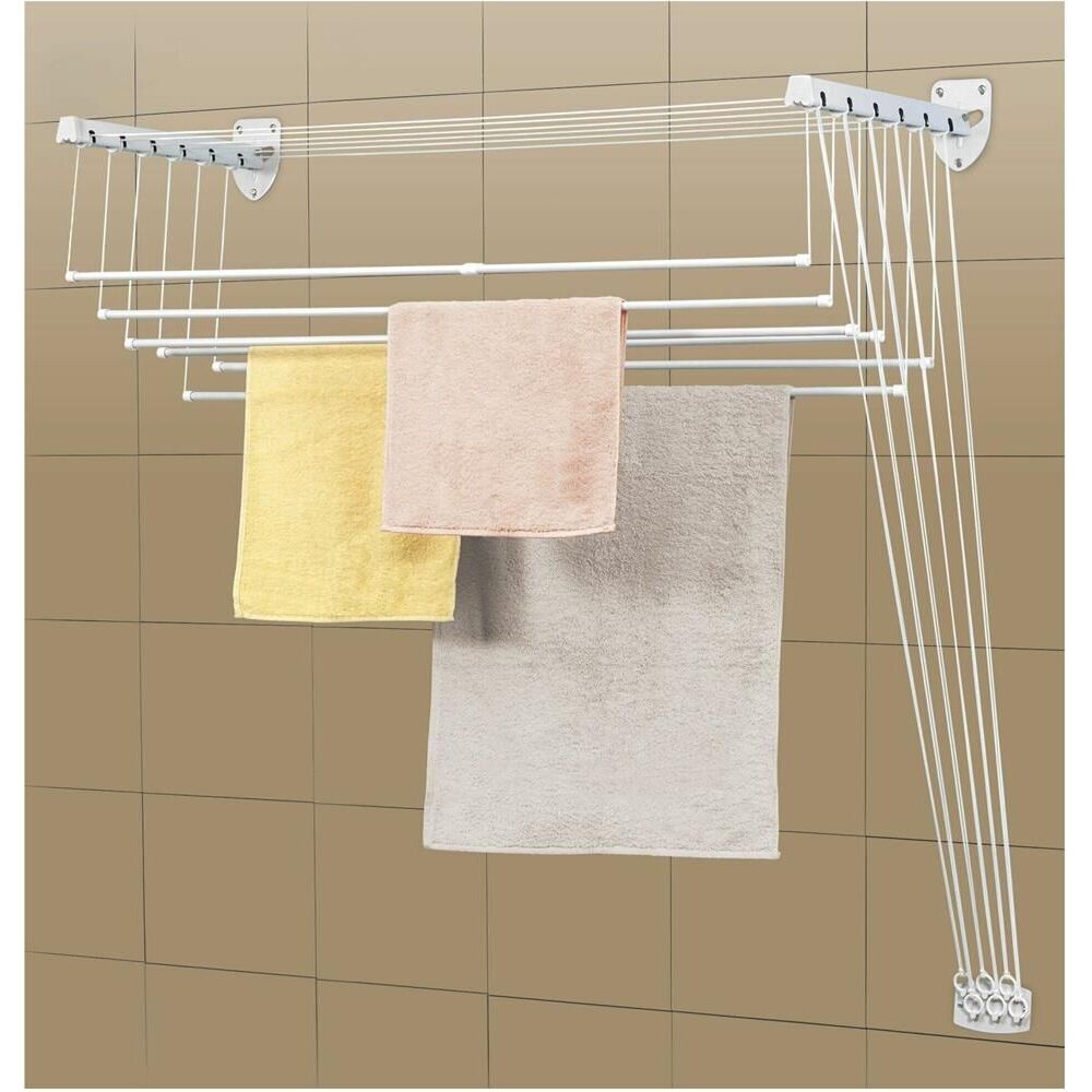 ЦВЕТ: белый. РАЗМЕР ИЗДЕЛИЯ: 430 x 1 200 x 1 350 мм. МАТЕРИАЛ: металл + полипропилен. Сушилка для белья с возможностью крепления на стену или к потолку. Оптимальна для использования в ванной комнате или на балконе. Изготовлена из нержавеющей стали с полимерным порошковым покрытием, которое защищает от воздействия влаги и предотвращает механические повреждения. Суммарная длина поверхности для размещения белья - 7,2м. Максимальная нагрузка - 12кг.