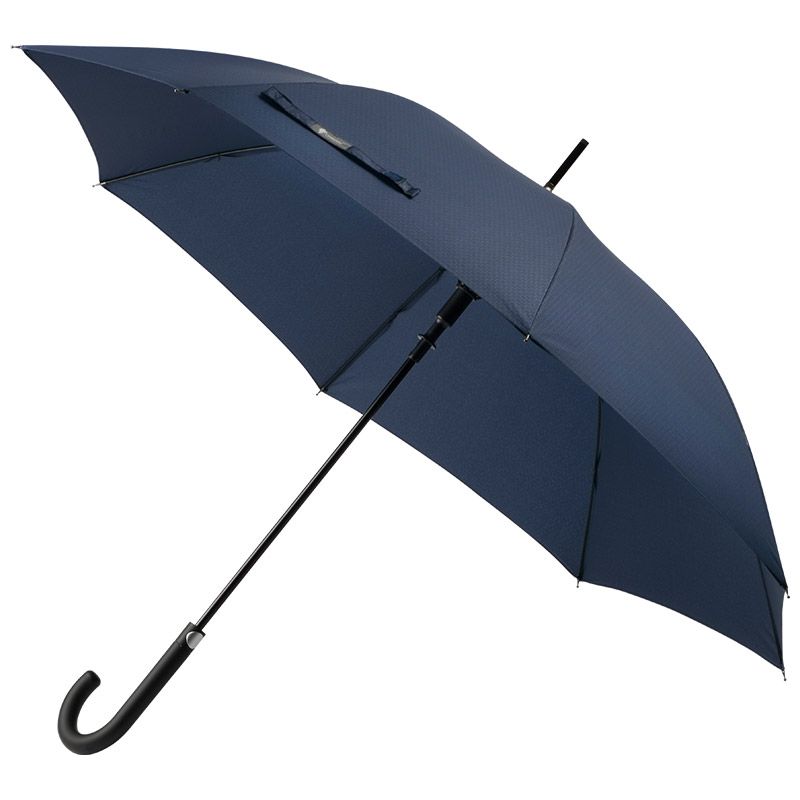Зонт-трость полуавтоматический с системой антиветер. Диаметр купола 104 см, вес 405 грамм. Длина по внешней дуге купола: 120 см. Размер в сложенном виде: 82*4,5*4,5 см. 8 черных спиц из фибергласса и нержавеющей стали длиной 58 см. Стержень из нержавеющей стали, окрашенный в черный цвет. Купол зонта изготовлен из эпонж нитей. Поверхность получается губчатой, на ней не задерживается влага (она стекает вниз), такая ткань более устойчива к физическому воздействию. Особое плетение нитей создает на поверхности рисунок в виде сот, оно повышает прочность и долговечность зонта. Купол окрашен в один цвет. Пластиковая рукоятка с покрытием из ТПР. Удобный чехол с ремешком для переноски на плече. Материал: полиэстер, нержавеющая сталь, фибергласс, пластмасса, ТПР. Цвет: синий.
