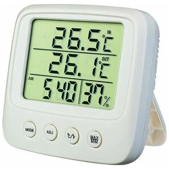 • Цифровой дисплей с одновременным; отображением времени, температуры; внутри помещения и на улице (2 темпера-; туры) и влажности внутри помещения; • Внешний датчик температуры; • Отображение времени: час, минута, 12/24; часа переключаемый; • Функция будильника