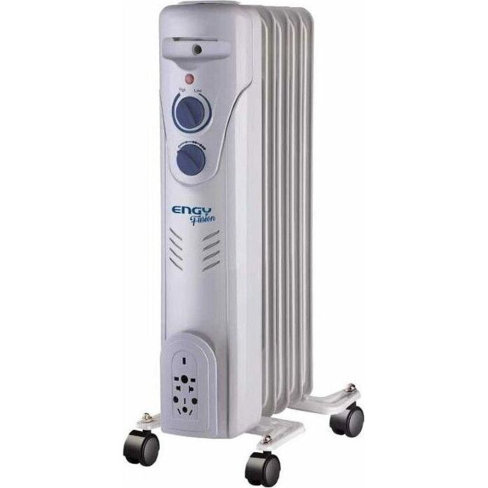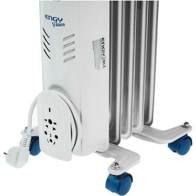 Радиатор масляный серия Fusion Мощность 1000 Вт 5 секций Компактный типоразмер секций Размеры секции (Ш*В) 120*500 мм Защита от перегрева Световой индикатор работы Регулируемый термостат Регулировка мощности Колёсики для перемещения Устройство для намотки сетевого шнура Гарантия 12 месяцев Напряжение 220-240В 50Гц