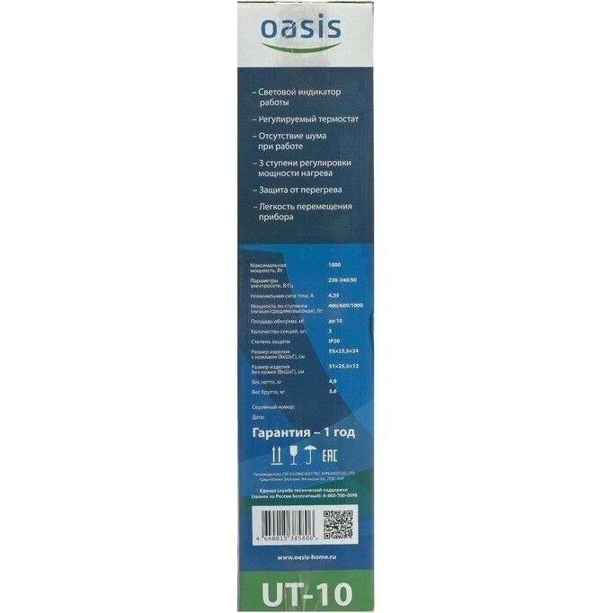 Напряжение, В 220-240 Номинальная сила тока, А 4,35 Мощность, Вт 1000 Мощность по ступеням (низкая/средняя/высокая), Вт 400/600/1000 Количество секций, шт. 5 Площадь обогрева, м2 до10 Габаритные размеры (В*Г*Ш) с ножками, см 55*25,5*24 Габаритные размеры (В*Г*Ш) без ножек, см 51*25,5*12 Вес, кг 4,9