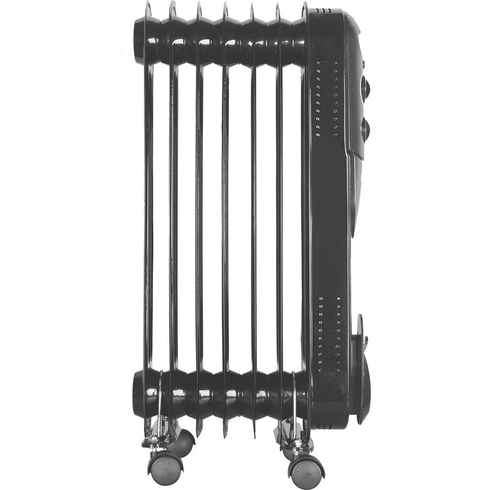 Мощность, Вт 1500.; Напряжение, В 220-230.; Номинальная частота, Гц 50.; Количество секций 7.; Рекомендуемая площадь, м² 20.; Термостат Да.; Термозащита Да.; Цвет чёрный.; Вес, кг 5.6 кг.; Гарантия 1 год.; Комплектация Масляный радиатор, Опоры с колёсами, Паспорт (инструкция), Упаковка.; Габариты упаковки 0.365 × 0.651 × 0.13 м.