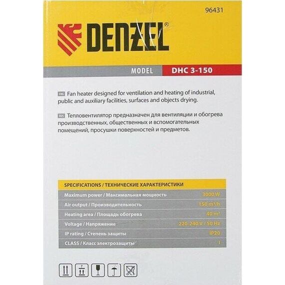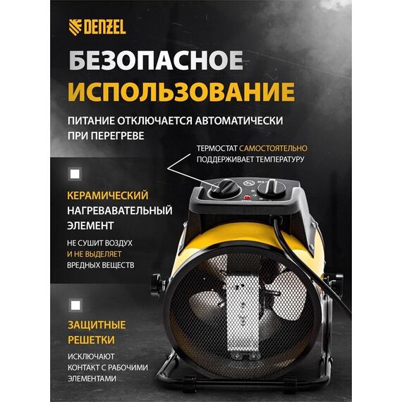 Пушка тепловая DENZEL DHC 3-150 керамический нагреватель (тепловентилятор) 96431