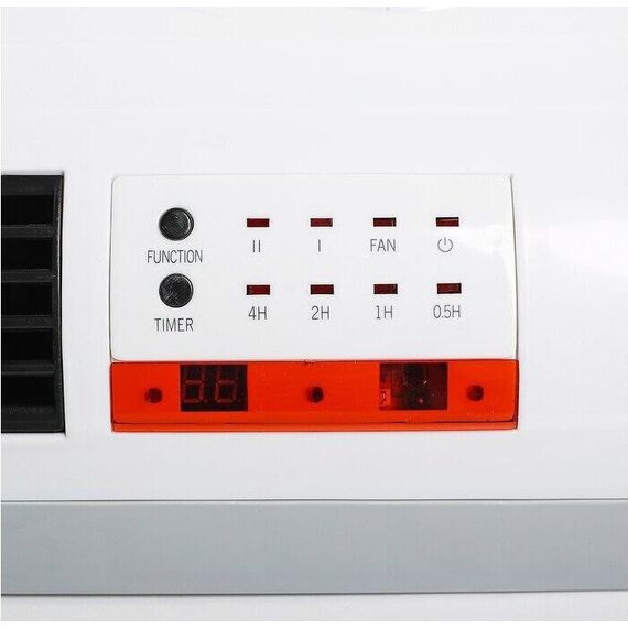 Мощность 2000 Вт Керамический нагревательный элемент Современный дизайн LED дисплей 2 режима работы (обогрев 1000 Вт, обогрев 2000 Вт) Световая индикация режимов работы Электронный термометр Настенное размещение Размеры тепловентилятора (В*Ш*Г) 12*50*20 Панель управления на корпусе тепловентилятора Пульт дистанционного управления Защита от перегрева Таймер на 7,5 часов Класс электрозащиты II Гарантия 12 месяцев Напряжение 220-240В 50Гц