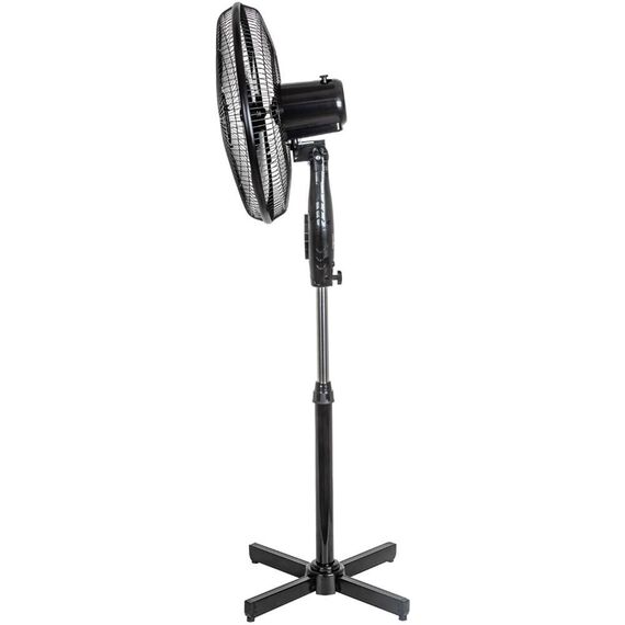 Вентилятор напольный Диаметр 16 “ 3 лопасти 3 скорости Вращение на 90° Регулировка угла наклона Режим осцилляции Устойчивое основание для размещения на полу Мощность 50 Вт Скорость вращения 1300 об/мин Материал: полипропилен Размер 45x45x125см