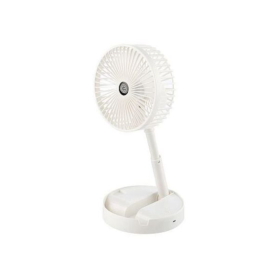 Диаметр 6" 3 скорости Складной Реглируемая высота Подставка для мобильного телефона Работа от аккумулятора или USB, шнур USB в комплекте Компактные размеры, легко брать с собой Время работы от батареи 1-2 часа Вход AC: 5 В-1,0 A Выход DC: 5 В Батарея: 18650-3,7 В 800 мАч Мощность 4,5 Вт