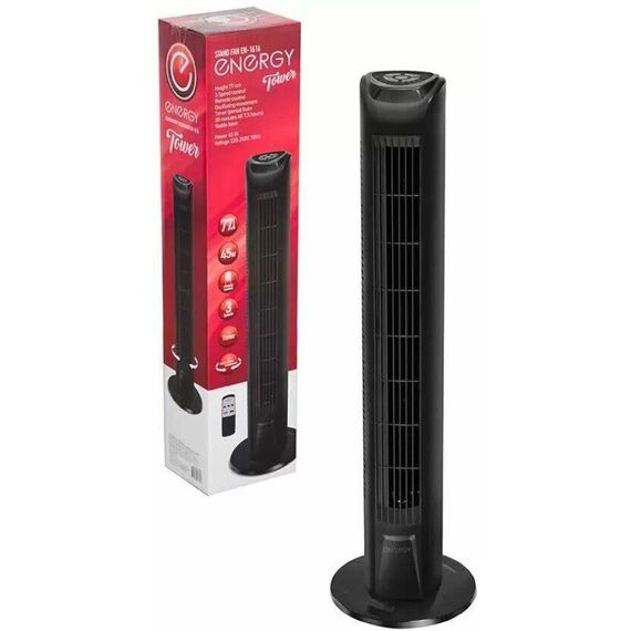 ENERGY EN-1616 TOWER (напольный, колонна) с пультом черный Современный Дизайн Серия TOWER Высота 74 см 3 скорости Пульт Таймер (7,5 часов) Функция поворота Мощность 45Вт