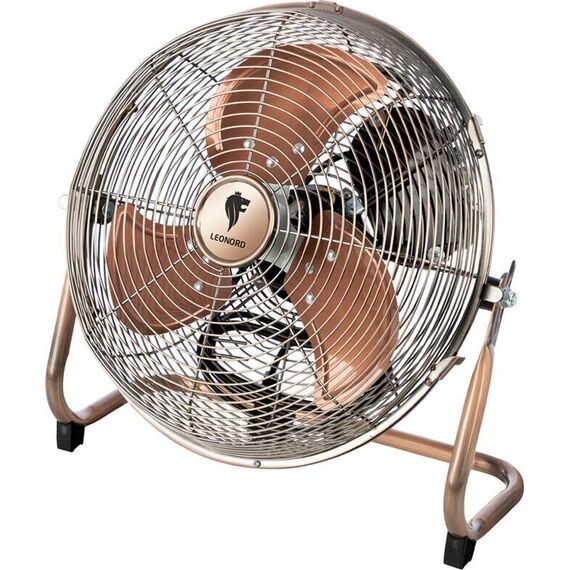 Диаметр 12" Высота 40 см 3 скорости Металлический корпус Алюминиевые лопасти Современный дизайн Медный цвет Регулировка наклона Длина шнура 129 см Мощность 45 Вт Гарантия 2 года